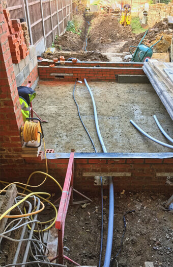 We perform compliant trenching and install electrical-grade conduit for underground mains cabling, including proper backfill, warning tape, and compaction where needed.